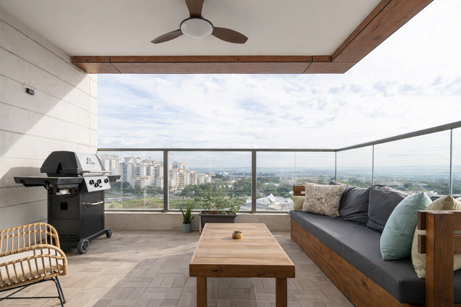 מרפסת רחבה עם נוף פתוח וירוק עד השומרון