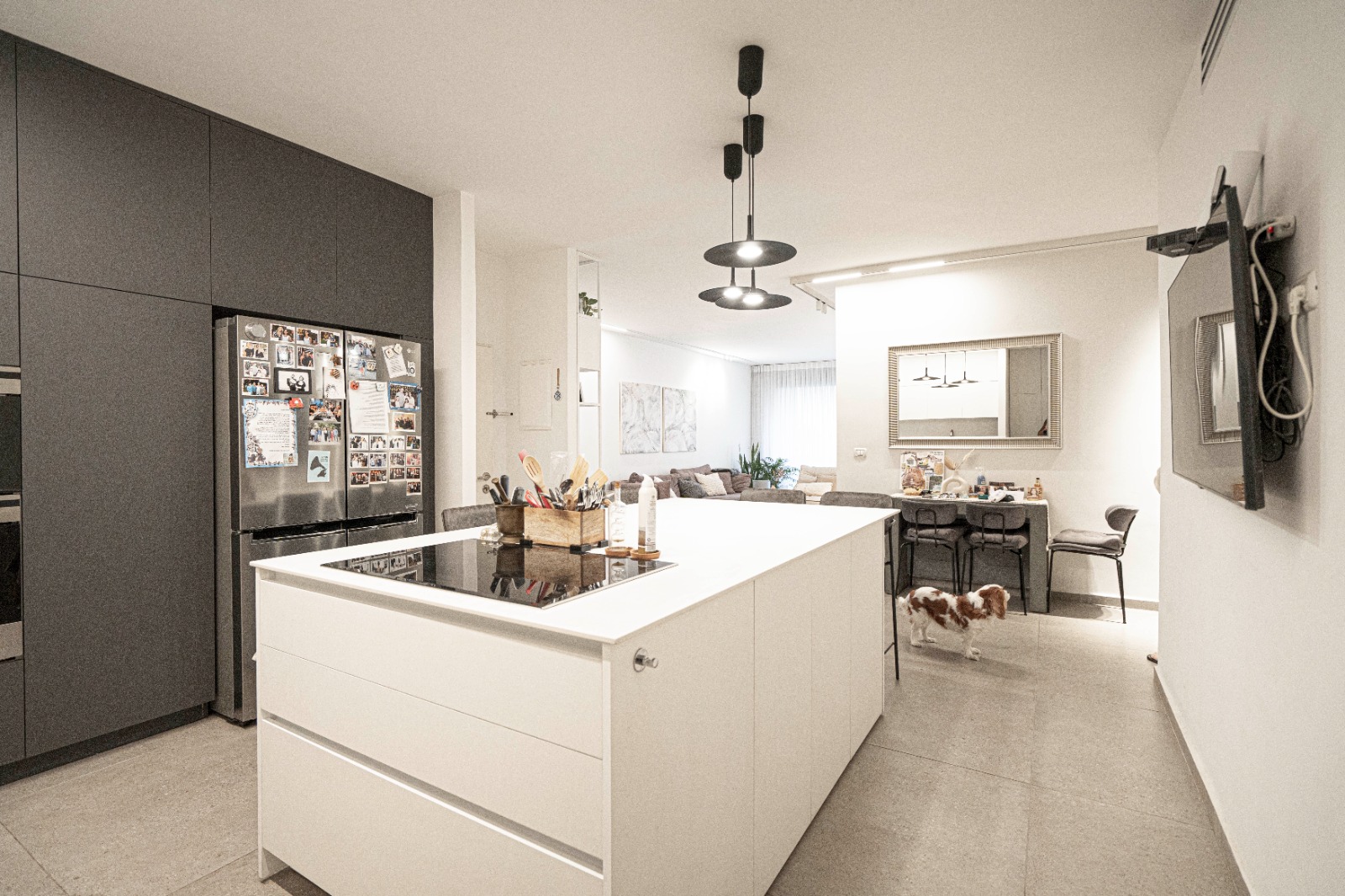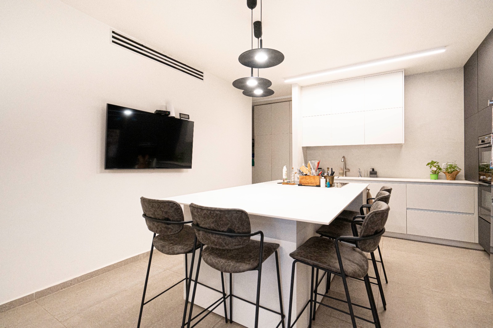 מטבח יוקרתי של סמל עם אי גדול במרכז מושלם לאירוח ולמשפחה